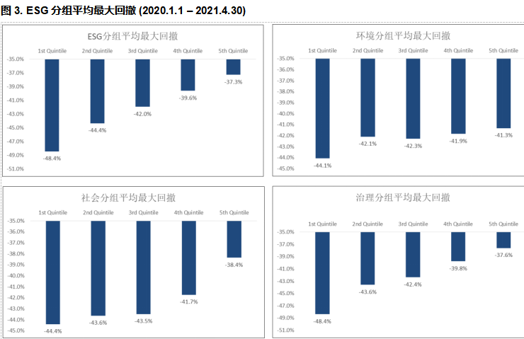 3.在最大回撤方面,環境、社會和治理表現領先的組別都表現了顯著優勢,證明了ESG因子在應對市場波動時的韌性。