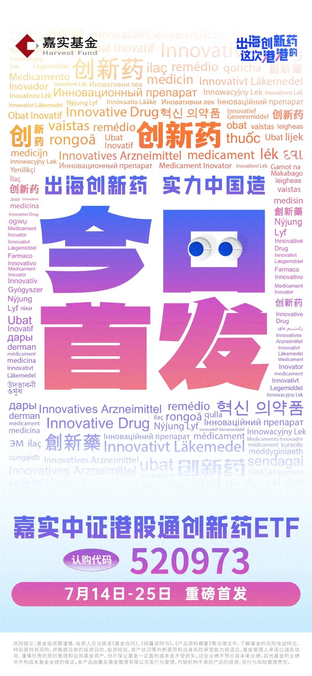 根據(jù)公告信息,嘉實中證港股通創(chuàng)新藥ETF(擴位簡稱:港股通創(chuàng)新藥ETF嘉實,認購代碼:520973)于7月14日-7月25日公開發(fā)售。該產(chǎn)品緊密跟蹤中證港股通創(chuàng)新藥指數(shù),為投資者一鍵布局港股創(chuàng)新藥龍頭企業(yè)提供高效便捷的投資工具選擇。