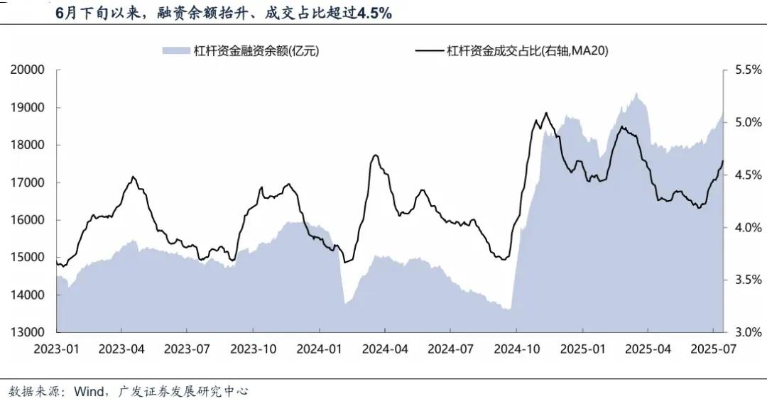 廣發(fā)證券認(rèn)為,去年924與今年春節(jié)后融資余額成交占比高點(diǎn)約5%,目前融資余額成交占比超過(guò)4.5%,在此背景下指數(shù)慢牛格局初步形成。