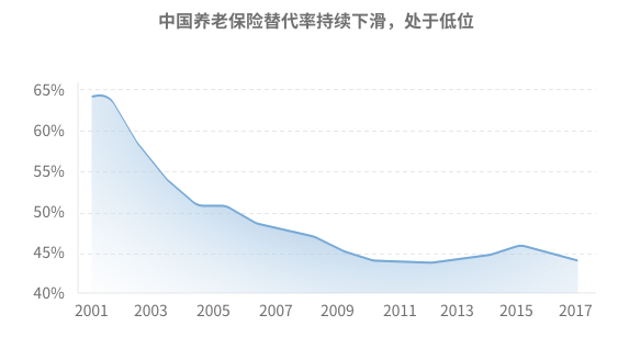 世界銀行建議如果退休后生活水平與退休前相當,養(yǎng)老金的替代率需要達到70%以上,目前我國基本養(yǎng)老保險的替代率約為45%,難以滿足高質量生活需求。